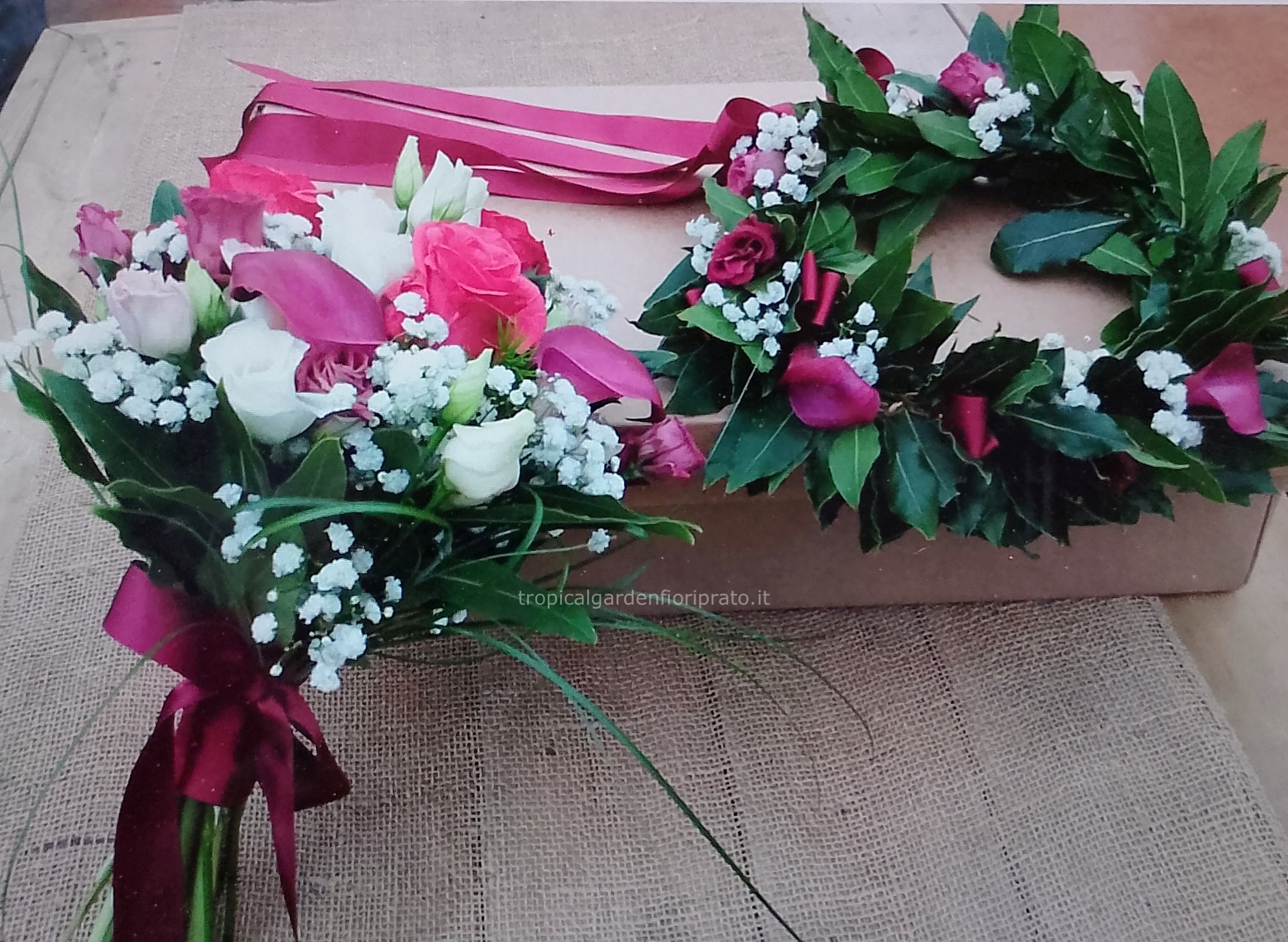 | Bouquet con coroncina alloro abbianato per laurea Cod. 126802 |