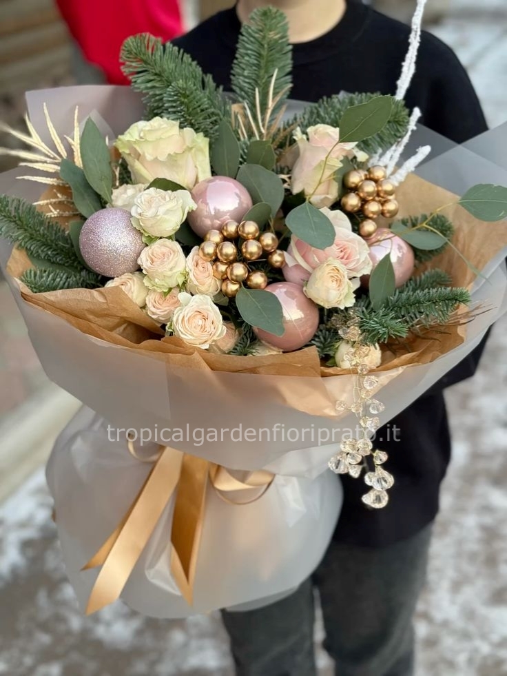 Bouquet natalizio esclusivo color rosa chiaro ed oro