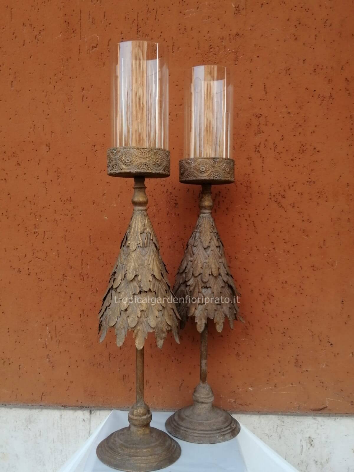 | Candeliere in ferro lavorato colore oro con vetro 2 pezzi Cod. 99684 | € 185,00 | Quantità : | |