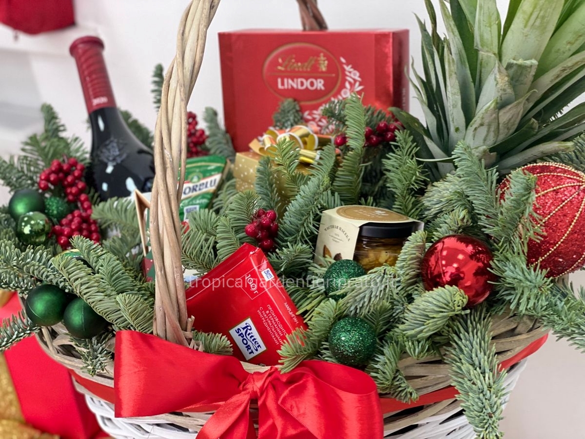 Puoi scegliere di accompagnare con fiori, piante, articoli da regalo , rose stabilizzate...... continua a visitare il nostro sito . Non effettuiamo la consegna del solo cesto set natalizio