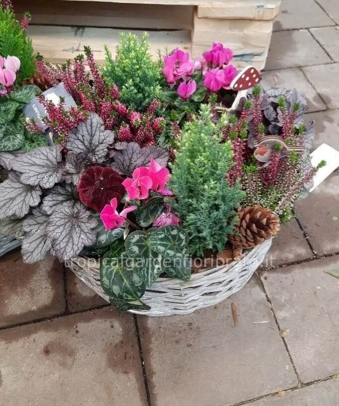 Composizione di piante da esterno 25 cm con cesto Cod. 116776 |