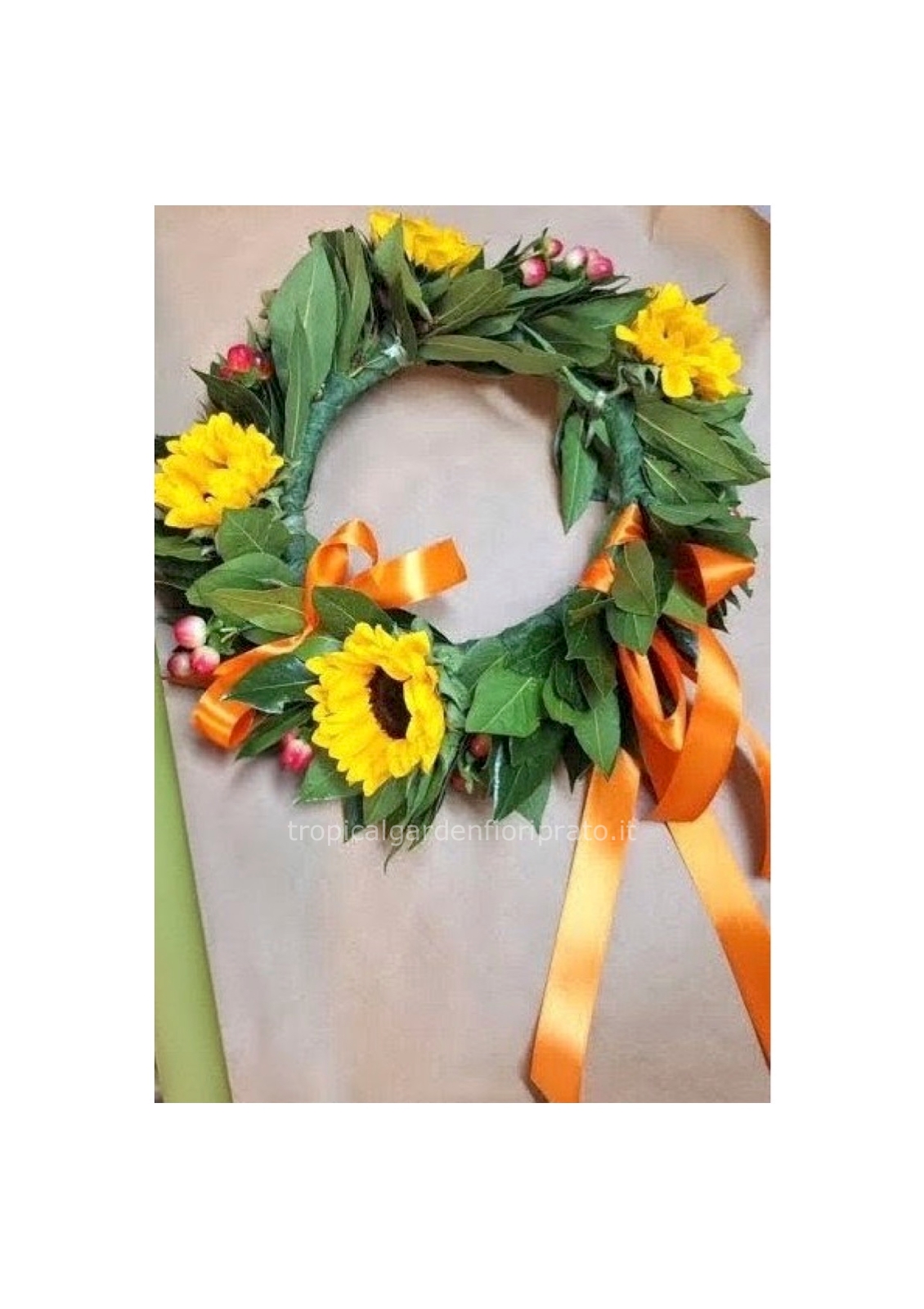 | Coroncina alloro laurea con girasoli e bacche Cod. 126909 |