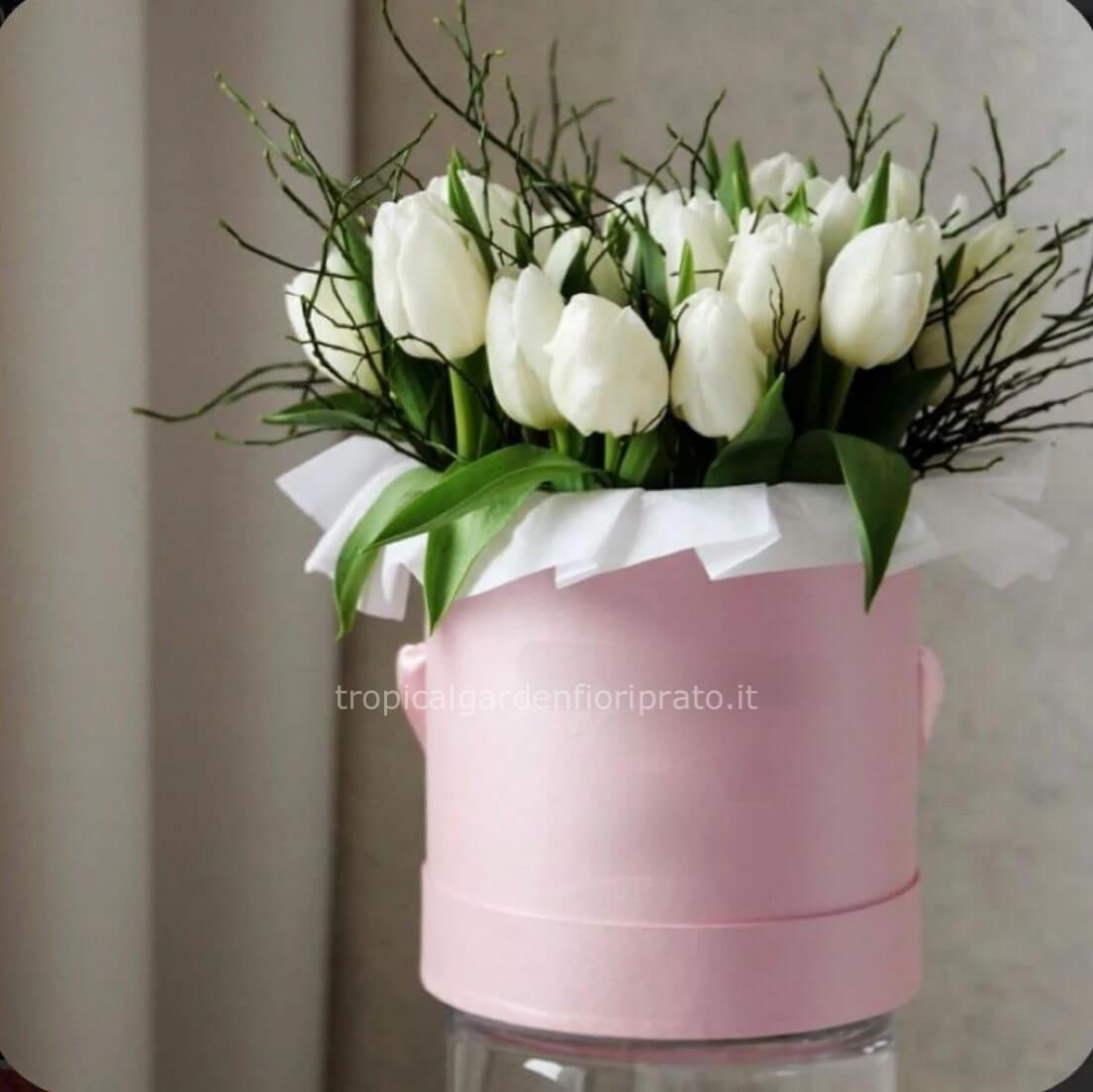 - Elegante Cappelliera alta 23 cm con Tulipani bianchi di stagione