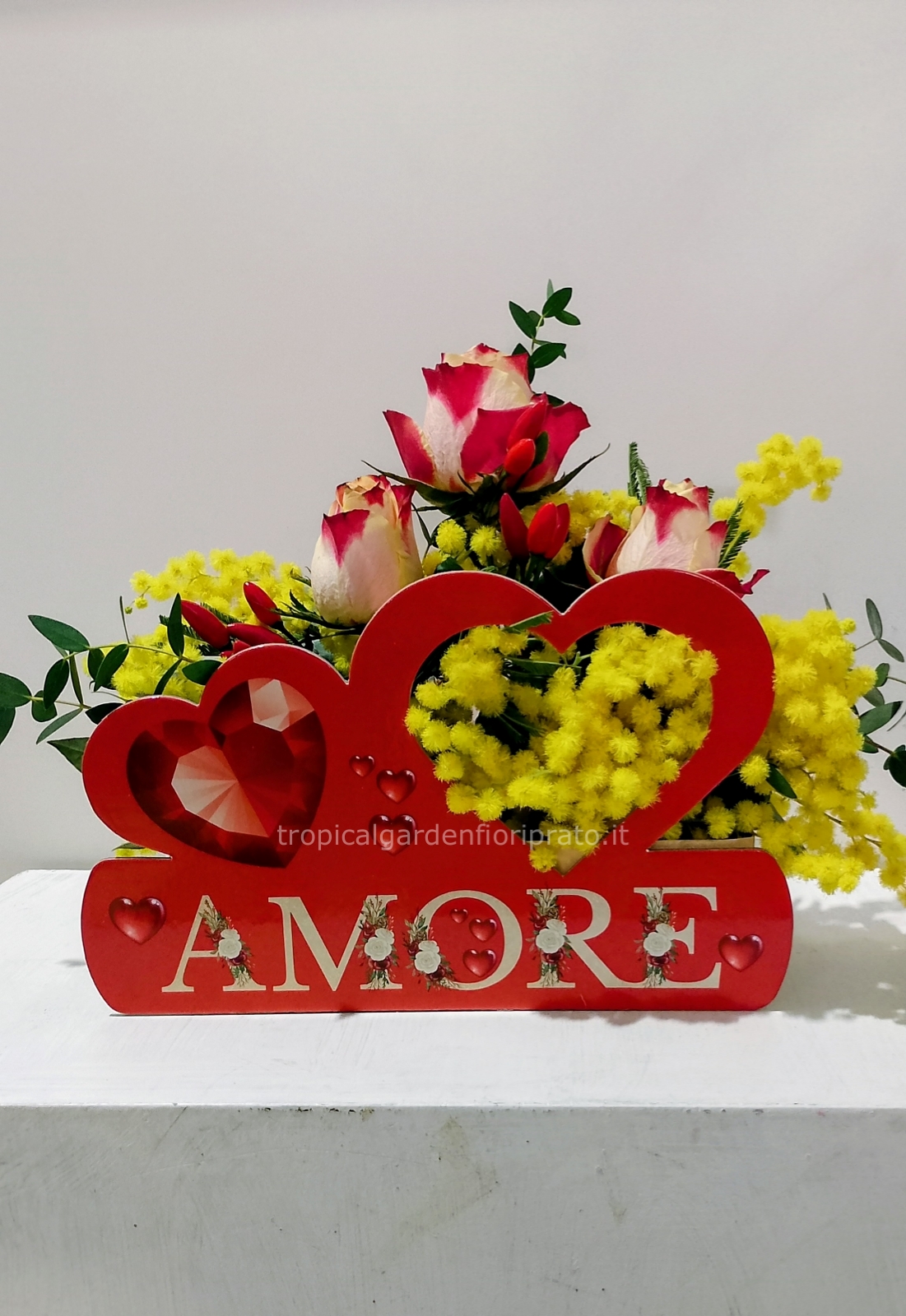 Con 3 rose e mimosa