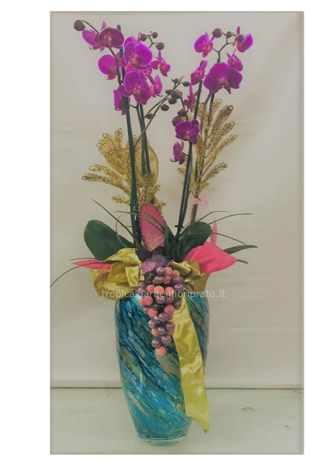 | Orchidea con vaso dipinto a mano e confezione buone feste Cod. 99631 |