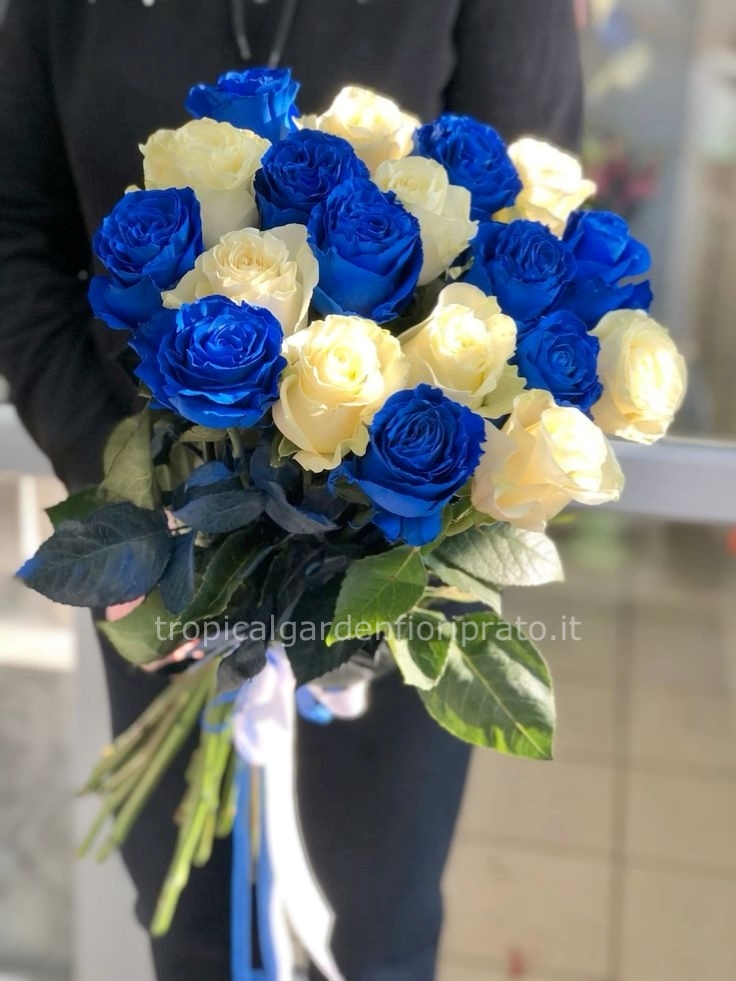 Rose a stelo lungo bianche e blu