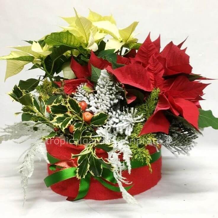 | Composizione essenziale di stelle di Natale colorate con box e decori Cod. 122005 |